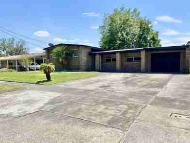 Welcome to this beautiful 4 bedroom 2 bath brick home! Unique layout with only 4 steps that lead up to 3 bedrooms and 2 full bathrooms. The 4th bedroom is separated giving a split bedroom floorplan. Spacious living room with ceramic tile, neutral paint and lots of natural lighting. Eat in kitchen with newer countertops and modern white cabinets. Convenient indoor laundry room that leads out to a great back yard area with a patio perfect for entertaining. The garage is oversized with plenty of space for storage. The extended driveway offers ample space for cars, trucks or boat parking. The landscaping offers beautiful palm trees and plush green grass. This home is located right outside of the city, it has a country feel in a small established neighborhood. Just a short drive to shopping, restaurants, and downtown Jacksonville. Schedule your showing today!