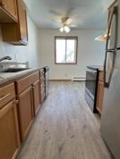 Walking in you will find a galley kitchen with room for a dining room table and access to the living room.