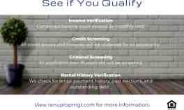 The monthly rent listed is based on a 12 month lease. Properties are leased on a first-come, first-served basis decided by lease signing, deposit payment, and move-in dates. Property photos and descriptions are representative. Lessee responsible for viewing premises to verify before lease signing. Complete a rental application online at www RenuPropMgt com
