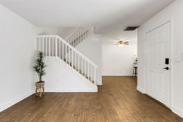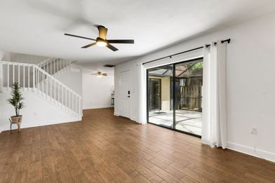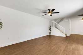 Spacious and private, new stainless steel refrigerator and dishwasher, quartz counter tops, wood-look porcelain tile floors downstairs with new luxurious carpet upstairs, 1/2 bath with washer/dryer downstairs, sliding glass doors in each room, large closets, updated bathrooms, fresh paint, private fenced patio with screen-enclosure, perfect for entertaining. 2 assigned parking spaces with ample guest parking. Basic cable, trash included, tenant pays utilities. Beautiful park-like grounds with pool, Jacuzzi, tennis courts, and lake. Nearby shopping, restaurants, movies, and excellent schools. No smoking. INCOME REQUIRED 3X rent, credit and background check required.