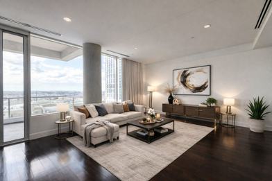 RARE luxury 1.5 bath unit on 10th floor of The W South Tower. Modern contemporary elegance & luxury throughout this suite including hardwoods & gorgeous views from your living and dining room. Euro style kitchen has Kuppersbusch, Sub-Zero & modern kitchen cabinetry & built in appliances. Master bath features a floating vanity, separate tub & shower & high end fixtures. Large Custom master closet system w ample storage. 184 sqft spacious patio w great views including Trinity Bridge & American Airlines Center. Hotel & residential amenities: 24 Hour Room Service, 24 hr security, Valet, Concierge, Fitness Center, Laundry Service. Zero edge infinity pool, Walk to AAC, Katy Trail, Museums, shops, restaurants.