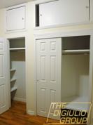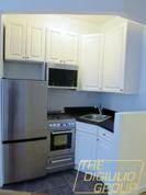 Spacious open plan kitchen/living room with decorative brick fireplace, strip wood floors and stainless steel appliances. Bedroom offers wall of floor – ceiling closets. Full bathroom.