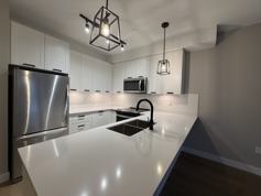 The condo includes a well-equipped kitchen with a refrigerator, stove, oven, and dishwasher, along with window coverings and carpeted living areas. Enjoy the convenience of free in-unit laundry, dedicated storage, and one parking stall.