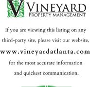If you are viewing this listing on any third-party site, please visit our website, www vineyardatlanta com for the most accurate information and quickest communication.