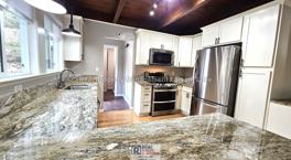Nestled among tall trees on 2 private wooded acres, this unique 4-bedroom, 2-bath single-family home offers peaceful living. With 1,700 square feet, warm wood ceilings, hardwood floors, and large windows overlooking the forest, this home blends comfort with nature. The open living and dining area connects to a beautifully updated kitchen featuring granite countertops, stainless appliances, and plenty of storage.