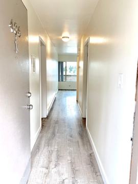 This 2-bedroom apartment is on the top floor and recently remodeled. The unit comes with a large balcony and a view. Full wall built in storage in master bedroom. Bypass closet in 2nd bedroom. Newly repainted, Tile backsplash in kitchen, New Bathroom fixtures, and Luxury Vinyl plank flooring throughout.