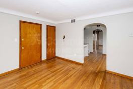 A bright and comfortable apartment within a well-maintained brick building. The interior features beautiful hardwood floors throughout the spacious living area and bedroom, with large windows that bring in natural light and create a welcoming atmosphere. An arched doorway connects the living room to a dedicated dining area, providing a functional layout for relaxing or entertaining. The kitchen includes white cabinetry, a modern backsplash, generous counter space, and a convenient breakfast bar for additional seating or prep space. A clean full bathroom with vanity storage and natural light adds to the practical layout of the home. The property is conveniently located near Rta bus stops along Ridge Road, Brooklyn Memorial Park, and grocery options such as Brooklyn Grocery Outlet and shopping at Ridge Park Square.