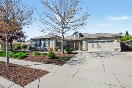 Welcome to your dream home at 3540 Arden Villa Court in Roseville, CA. This stunning property boasts a beautifully landscaped front yard and a spacious driveway leading to a three-car garage. The elegant entrance invites you into a bright and open floor plan with pristine hardwood floors and modern finishes throughout. The gourmet kitchen is a chef's delight, featuring sleek countertops, stainless steel appliances, and an expansive island perfect for entertaining. Adjacent to the kitchen, the living area is bathed in natural light, offering a cozy space for relaxation with built-in shelving and a ceiling fan for added comfort.