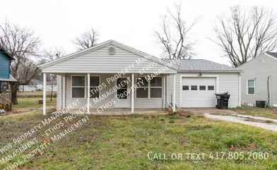 Welcome to this charming 2-bedroom, 1-bathroom home located in the vibrant city of Springfield, MO. This property boasts a spacious garage, providing ample parking and storage space. The large backyard is perfect for outdoor activities or simply enjoying the fresh air. The back deck adds an extra touch of outdoor living space, perfect for entertaining or relaxing. Inside, you'll find a fully equipped kitchen with an oven/stove, ready for all your culinary adventures. The home also features a large covered front porch, offering a cozy spot to enjoy your morning coffee or unwind after a long day. This home combines comfort, convenience, and charm in one package. Don't miss out on this gem in Springfield, MO.