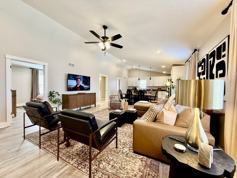 The living room is a part of the contemporary open floor plan. See what the chef is up to, help them set the table, or unwind on the cozy sofa with a good book.