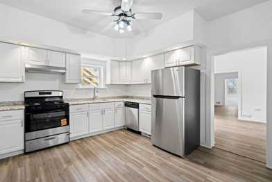 Bright kitchen and bathroom