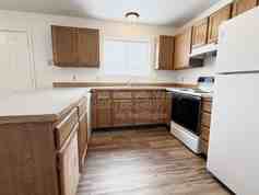 The kitchen offers generous cabinet and counter space and comes equipped with an oven/range and dishwasher, making cooking and cleanup simple and efficient.