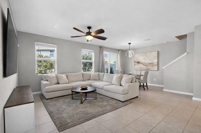 Open floor plan with a spacious living and dining area, perfect for relaxing or entertaining. The home comes partially furnished, including mounted TVs and living/dining furniture, making move-in easy. Generous size bedrooms and walk-in closets.