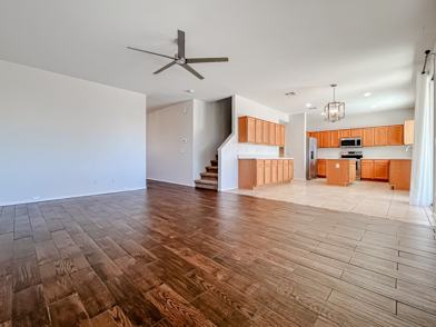 Premier Golf Course Community with Nearby Schools, 5 Parks, 2 Volleyball Courts, 1 Basketball Court, Ramadas w/ Grills and Public 18-Hole Executive Golf Course and Restaurant. Two Story Home with generous living space. Second level has a large versitle loft creating plenty of room for household entertainment. Kitchen features an island, stainless steel appliances, built-in microwave and plenty of hard wood cabinetry. Adjacent Dining and Family Room w/ sliding doors that lead to an inviting back yard featuring a covered patio w/ lighted ceiling fan and extended paver patio. Rich wood-like tile in formal living/dining room and family room. Primary Suite includes spacious bedroom, walk-in shower, garden tub, extended vanity and walk-in closet. Laundry room w/ washer and dryer included. Half bath just off kitchen. Ceiling fans and window blinds throughout. Lots of storage room under stairwell and in garage. Brand New A/C installed. You will love living in this community! Quick access to US 60 and Loop 202. Sorry, no Cats! Will accept to 2 dogs, 20 lbs or less.