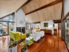 This distinctive single-story Pacific Northwest modern home offers a rare architectural style inspired by the clean lines and indoor-outdoor living of Robert Rummer and Joseph Eichler homes. The house features dramatic post-and-beam ceilings, walls of windows and a stunning glass-enclosed central atrium with skylights that fills the home with natural light throughout the day. The four-bedroom, two-bath layout is both comfortable and highly functional. The primary bedroom includes a walk-in closet, while the home offers abundant cupboards and storage throughout, including a walk-in pantry and a separate laundry room with washer and dryer. Outside, the fully fenced yard includes garden beds and several mature fig and persimmon trees, as well as grapes and blueberries. A gate opens directly onto an adjacent green space, providing easy access for walking or exercising dogs. Located in a quiet, established neighborhood in Happy Valley, the home is conveniently close to hospitals, shopping, and everyday amenities including Costco and the Clackamas Town Center. Additional features include: -Central air conditioning -Single-level living -Fully fenced yard with direct green space access - Abundant storage and cabinetry -Walk-in pantry Walk-in closet in the primary bedroom -Washer and dryer in dedicated laundry room -Available fully or partially furnished This is a rare opportunity to live in a light-filled architectural home that blends modern design with the relaxed indoor-outdoor lifestyle of the Pacific Northwest Renter is responsible for all utilities. No pet rent but breed restrictions apply. Sorry, but no cats or smoking permitted.