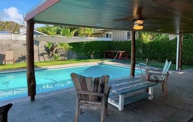 Paradise on Kaha Street just 5 blocks from the beach in a very desirable neighborhood. After nearly 3 years, this rarely available and highly sought-after home is available beginning 6/1/26. Featuring 4 bedrooms, 2 bathrooms, and a beautifully remodeled kitchen with built-in double stove/microwave. Large fully fenced backyard with a covered patio and a saltwater pool. Yard and pool maintenance included. Brand-new solar system with 2 Tesla Backup Up Batteries designed to offset normal electrical usage. Includes 4 split AC units, one in 3 of the 4 bedrooms and one in the main living area. Lots of interior living and outdoor entertaining spaces. Easy to show. Please note this is a duplex-style home. There is another unit rented on the property. The other unit has a completely separate entrance with separate gated parking. The pool is exclusive to this main unit. Will rent fast! $7,200 a month. Water, bi-weekly yard work and weekly pool maintenance INCLUDED! Schedule your showing ASAP.