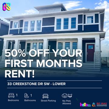 AMAZING MODERN 1 BED/ 1 BATH BASEMENT SUITE ONLY!VIDEO TOUR: https www youtube com shorts QwOQXH6XPjUInterested in this unit? BOOK HERE: https showmojo com 79c3e9f0b2 lUse our automated booking system, ShowMojo, to schedule a showing. You'll receive a response within a few hours with available dates and times.Note: Showings are conducted in groups, not one-on-one. IMPORTANT INFORMATION: - Parking: Street Parking - Pets: No Pets Allowed - Smoking: Non-Smoking - Storage: No - Laundry: In- Suite LaundryUTILITIES: Shared Utility Unit: This unit shares a utility meter with another unit. Utility costs will be split between the two units with 60% of the cost being paid by the main (upper) unit and 40% of the cost being paid by the secondary (lower) unit. A monthly utility deposit of $350 for the main unit and $225 for the secondary unit will be charged for the first three months of the tenancy. UNIT FEATURES: -Main is NOT included. The main level will tenant Occupied. - Separate entrance for basement - Kitchen has tiles and back splash with stone countertops and Stainless Steel Appliances - One private bedroom - Hardwood and tile flooringCOMMUNITY FEATURES: This property is located in a vibrant community with easy access to: - Shopping and grocery stores. - Tennis courts and recreational facilities. - Public transit (bus and train). - Parks, bike paths, river access, and playgrounds.A LEADER IN CALGARY PROPERTY MANAGEMENT This property is managed by Ripple Property Management—a name synonymous with quality and trust. With 15 years of expertise and a commitment to excellence, we make property management and renting a seamless and enjoyable experience. View more properties managed by Ripple Property Management: https showmojo com 79c3e9f0b2 l