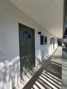 The apartment features brand new flooring, a fully updated kitchen with new cabinetry, countertops, and stainless steel appliances, and a thoughtfully designed living space that feels both open and inviting. Large windows bring in plenty of natural light, and residents can enjoy ocean views from the shared upstairs balcony — the perfect place to relax and take in the coastal breeze.