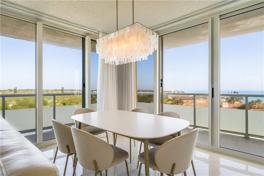 Live life elevated in the corner of the 7th floor in the only high rises in Vero Beach. Relish in birds eye views from the wrap around covered balcony of both the beach and bridges. Modern updates make this a stylish beach retreat. Crisp white kitchen with stone counters, tile backsplash, breakfast bar. Impact glass, tile throughout, furniture negotiable. Enjoy the Florida sunshine in the oceanfront pool, exercise in the fitness center, and enjoy sunrise beach walks with private beach access. Perfectly located with all the Ocean Drive amenities, shopping and dining right outside your door.