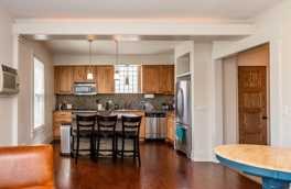 The unit is sleek and sophisticated with an open floor plan and high ceilings. It is located on the 2nd and 3rd floors. The kitchen is updated with hickory cabinets and a central island with natural stone tile and LED lighting. Stainless steel appliances, including dishwasher and microwave. There are 2 modern bathrooms that boast ceramic showers and vessel sinks. There is air conditioning and paddle fans. Coin-operated shared laundry is available in the building next door. Some parking available at an extra $100/mo per space.