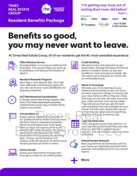 Resident Benefit Package: All Times Real Estate Group residents are enrolled in the Resident Benefits Package (RBP), including HVAC air filter delivery, utility concierge service, and our resident rewards program. Additional monthly fee applies, not included in rent.