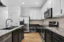 Welcome to this bright and stylish 3-bedroom, 2.5-bathroom in Greensboro that blends modern design with everyday comfort. The open-concept layout features a chef-inspired kitchen with dark cabinetry, granite countertops, a huge breakfast bar island, and stainless steel appliances, perfect for cooking and entertaining. Large windows fill the living spaces with natural light, while neutral tones and wood-look flooring create a warm, contemporary feel.