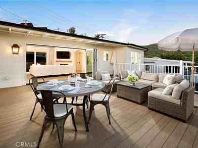 Welcome to your coastal cottage as seen on TV in beautiful Laguna Beach. Enter through the charming Dutch door into the main living area which boasts hardwood floors, a cozy fireplace, and opens to the large back yard. A wall of custom designed window doors open to the oversized front deck, perfect for outdoor dining, entertaining and relaxing. Enjoy ocean views from the deck, living room, kitchen and primary bedroom.