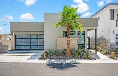 Highly sought-after cool and sleek single level 2-Bed 2.5-Bath rent situated in a premier location within the gated community of "VUE". In pristine condition, the rent features a luxurious primary suite with a spa-like bathroom, fitted walk-in closet and glass sliders that open to the sparkling pool and tiled deck. The en-suite guest Bedroom with spectacular mountain views is found on the opposite side of the house providing for additional privacy. The office/den can easily be reconfigured back to a bedroom if desired (see virtually staged pic in photos). A generously proportioned great room offers high ceilings, clerestory windows and glass sliders that open to the covered patio and pool deck with firepit. Gourmet kitchen features quartz counters & custom backsplash, under-counter lighting and Thermador appliances. Numerous upgrades include banded window shades, enhanced lighting, surround sound speakers, Life-Source water conditioning system and owned solar. Direct access air-conditioned garage has a finished epoxy floor, electric car charger and an abundance of fitted storage cabinets. Totally private low-maintenance yard includes a large inviting pool and separate above ground therapeutic spa complete with a secluded lounging area. Minutes to downtown Palm Springs and a short drive to Palm Springs airport.