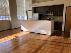 This contemporary loft apartment boasts an expansive layout with 2 bedrooms and 2 bathrooms. The open floor plan showcases high ceilings and abundant natural light from large industrial windows, offering city views. The kitchen features modern appliances and a central island. Hardwood floors run throughout, complementing the loft's industrial-chic aesthetic. The primary bedroom is notably spacious. Bathrooms are sleek with modern fixtures. Ample closet space is provided.