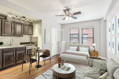 Experience elevated city living in this beautifully updated studio at The Oliver at Gold Coast, ideally located in Chicago s desirable Near North / Gold Coast neighborhood. This thoughtfully designed home offers modern finishes, smart features, and stunning city and lake views. The studio features a remodeled kitchen and bathroom with sleek stainless steel appliances, including a refrigerator, gas range, microwave, and dishwasher. Wood cabinetry, tile backsplash, and energy-efficient appliances give the kitchen a clean, contemporary feel. Enjoy comfort and functionality with luxury vinyl plank flooring, built-in shelving, multiple closets, and ceiling fans. Large windows fill the space with natural light while showcasing amazing city and lake views. The bathroom includes a shower and tub combination for added convenience. Additional highlights include radiant heat, window A/C units provided by the building, window treatments, and keyless smart lock entry via phone app. Residen