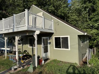 Located within walking distance of the boat ramp and several portage lakes hot spots. This house features a roomy kitchen, two first floor bedrooms with a full bathroom, two additional bedrooms upstairs with a half bathroom, and a large walkout basement for storage. The house was recently renovated with new siding, LVP flooring, and a fresh coat of paint.