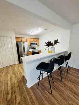 Ditch the moving truck and just bring your clothes and essentials! This beautifully renovated 2/2 ground-floor condo at The View offers upscale living in an unbeatable, walk-to-campus location with parking. Designed with both comfort and style in mind, the unit features an expansive open-concept living and dining area, a modern bar top, quartz countertops, large pantry and stainless steel appliances. Washer and Dryer Included. Each spacious bedroom is semi-furnished (bed, nightstand, and desk), along with walk-in closets and private ensuite bathrooms. Step outside to your private patio perfect for enjoying game days or unwinding with friends and enjoy the ease of ground-floor access just steps from campus. $1200 per month/room, includes garbage, tenant covers utilities. Available for early move in now, summer term and starting Mid July 2026 for the 26-27 year. Pets considered. nonrefundable pet fee.