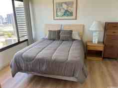 Spectacular ocean view one bedroom condon on the 34th floor. Convenient location, across from Waikiki Beach, one block from Ala MOana Shopping Center. Great amenities: Fitness rooms, hot-tub, saurna, pool, BBQ, restuarants, phamacy, shops etc. Fully furnished with a queen bed, dining, sofa set, lanai chairs etc. Full kitchen with washer/dryer in the unit. Comes with 1 covered parking. 24-7 Security guard.