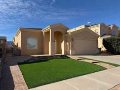 Very well cared for rental home located in northeast El Paso. This home is two blocks away from the large Sandstone Ranch city park with great walkways and a large children's playground. Also, located 15 miles (per Google maps) from the Fort Bliss, TX Constitution Gate. Welcome to a large living area with an inviting electric fireplace. The kitchen consists of all stainless-steel appliances to include a dishwasher and a 3-drawer refrigerator. The primary room is zoned, and the additional two rooms are in a separate hall next to a large full bathroom and utility room. Enjoy the low maintenance front a back yard landscaping with artificial turf and extended stamped cement slabs all around the house. All windows in this home have custom wood shutters. In the surrounding areas you will find major shopping, great restaurants, fast food restaurants and much more. Look no more, you just found your home sweet home.