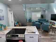 Experience modern coastal living in this beautifully renovated 3-bedroom, 2-bathroom townhouse located just a 7-minute walk from the pristine beaches of New Smyrna Beach. Comfortably sleeping up to 10 guests, this stylish home features two king beds, two queen beds, and a queen sofa sleeper, making it ideal for families, groups, or extended stays. You'll love the sleek interior design that includes a stunning glass staircase, marble countertops, a fully equipped gourmet kitchen, and modern finishes throughout.