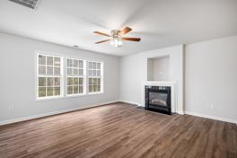 Upon entering, a gracious two-story foyer sets the stage for a home designed with an open and airy floorplan, ensuring a seamless flow throughout. The heart of this residence is its luxurious kitchen, featuring elegant stone countertops and top-of-the-line stainless steel appliances, perfect for culinary enthusiasts. Durable LVP flooring extends through the main living areas, complementing the modern aesthetic, while a cozy fireplace invites relaxation and warmth on cooler evenings.