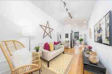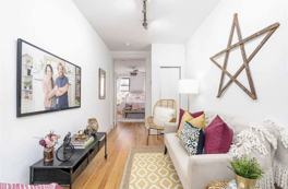 Bright and bursting with charm, this lovely unit is only one flight up. The eat-in kitchen is updated and boasts Stainless Steel Appliances, Corian Countertops and loads of Cabinets. The open concept space offers great flow for entertaining! Lovely bedroom has two closets and beautiful Exposed Brick Decorative Fireplace.