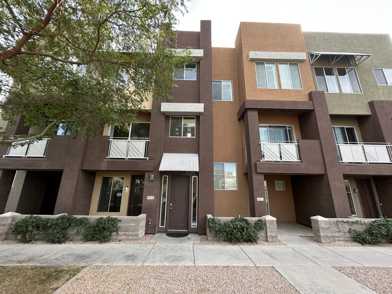 Perfectly located home in the sought after Quarter Condominium gated community. One of the best locations on property with pool view, proximity to guest parking, community clubhouse, fitness center, resort-style pools and spa. Three levels with den/ office, bath and two car garage on the ground floor. Second level main living area features open floor plan, upgraded cabinetry, granite counters, stainless appliances and gas fireplace. Top level features two bedrooms, two baths, highly upgraded steam shower, jacuzzi tub and functional layout. All tile throughout, water softener, and 40k in upgrades! A short walk to State Farm Stadium and Gila River Arena, restaurants, theater, Top Golf, Tanger Outlet Mall, entertainment and all Westgate has to offer. Don't miss this very special home!