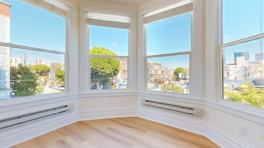 • Bright, airy space with abundant natural light and bay windows showcasing views over Hayes Valley