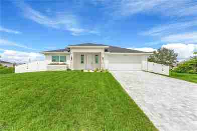 Experience the best of Southwest Florida in this "better-than-new" 3-bedroom, 2-bathroom residence. Spanning over 1,700 sq. ft. of sleek, modern living space, this home offers the perfect blend of coastal style and high-tech safety. Cook your meal in a Chef-Inspired Kitchen: Featuring stunning granite waterfall countertops, a custom tile backsplash, and a premium Samsung stainless steel smart oven. The home offers: High-end wood-look tile flooring flows throughout the home, accented by tray ceilings, recessed lighting. A Master Retreat has a spacious sanctuary with his-and-her walk-in closets and a luxurious en-suite bathroom featuring an all-glass tiled shower and dual vanities. There is a Flexible Space: That includes a versatile front sitting room-perfect for a home office, library, or formal dining area. Relax by the Resort-Style Pool: Dive into your private, heated pool featuring a sundeck and built-in water features, surrounded by a stylish paver deck and a fully fenced yard for ultimate privacy. This home comes with complete peace of mind with full hurricane impact windows and doors. Located in a quiet, developing neighborhood of Cape Coral, you're just a short drive from local dining, shopping, and the world-class boating and beaches the Gulf Coast is famous for.