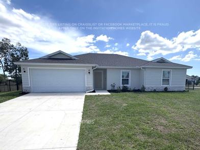Home Features and Amenities: Air Conditioning, Fenced Yard, Garage, Kitchen Island, Long Lease Terms, Luxury Vinyl Plank, Open Floorplan, Patio, Pet Friendly, Primary Bedroom on Main, Recessed Lighting, Single Story House, Smart Home, Stainless Steel Appliances, Walk in Closet, W/D Hookups, and professionally managed by Invitation Homes.