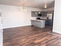 The place has brand new flooring in the living room and hallway (no carpet), so it feels clean and updated. Kitchen includes fridge, stove, microwave, and dishwasher, plus there's a washer and dryer in the unit.