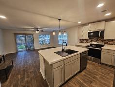 Too hot outside? This modern open floor plan has plenty of room to unwind inside. The large master bedroom with a vaulted ceiling makes the room feel spacious and airy. A perfect place to call it a night or shut yourselves in on those rainy days. This suite has its own full bathroom with dual vanities and big walk-in shower.