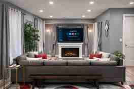 A cozy living area with TV and fireplace