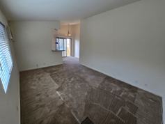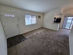 Beautiful upstairs end unit in small complex with a garage! Almost 900 sq. ft. Spacious living room (12x17) with vaulted celings. Freshly painted. Plush carpeting. Plantation style blinds. Wall AC. Modern kitchen with Corian counters. Breakfast bar. Stack washer and dryer included. Refrigerator. Microwave. Smooth-top electric stove. Dishwasher. Custom fixtures. Large master suite with balcony, mirrored wardrobe doors, 2 large wall closets. Vaulted ceilings throughout. Spacious.