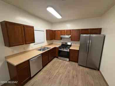 Fully updated, this bright 3 bed 2 bath home has been thoughtfully renovated from top to bottom. High ceilings create an open, airy feel, while brand new ceramic tile flooring flows seamlessly through every room. The kitchen shines with brand new stainless steel appliances and a new garbage disposal, ready for its first home-cooked meal. Both bathrooms have been refreshed with new toilets and modern faucets. Fresh interior paint, new LED light fixtures throughout, and new dual-pane sliding glass doors complete the transformation, adding both style and energy efficiency. Step outside to enjoy stunning mountain views from a low-maintenance front and backyard, perfect for relaxing without the upkeep. Easy access to I-19, commuting and running errands couldn't be more convenient. Must qualif