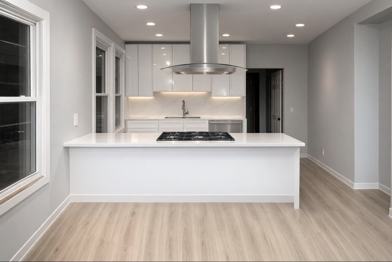 Welcome to this modern, stylish apartment located just minutes from New York City. This bright and spacious home offers a clean contemporary design with an open layout and thoughtful finishes throughout. The living area flows seamlessly into a sleek kitchen featuring quartz countertops, modern cabinetry, and a center island with seating, perfect for entertaining or everyday living. Large windows bring in plenty of natural light while maintaining privacy. The apartment features modern flooring, recessed lighting, and a contemporary color palette that gives the space a polished, upscale feel. A mini-split system provides efficient heating and cooling, offering year-round comfort.
