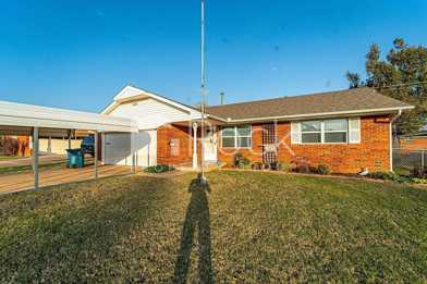 Great location within 10 minutes of Tinker AFB! This home features a kitchen with a breakfast bar and a separate dining area with patio doors that lead to an open patio area. The large, fenced backyard has a storage building and plenty of room for a pool or swing set. There is a 2-Car Garage plus covered parking over the driveway. The above ground storm shelter easily fits 6 people.