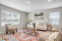The moment you walk in you will fall in love with how open and airy this layout is! The entire home features elegant vinyl flooring which blends nicely with the all-white kitchen cabinets and quartz countertop. The white and cream colors will compliment any style you create! Play with furniture and watch how the space will surprise you!