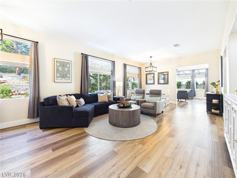 Beautiful fully furnished 3-bedroom, 2-bath home in desirable Summerlin North offering comfort, style, and effortless living. Step into a spacious, natural light-filled family room that flows seamlessly into the inviting living area with a cozy fireplace and open-concept kitchen featuring stainless steel appliances and ample space for cooking and entertaining. Just off the living room, a sliding door leads to a private backyard retreat complete with two patios, outdoor furniture, low-maintenance landscaping, and lush turf for year-round enjoyment. Each bedroom is generously sized, while the primary suite offers a spa-like bathroom with dual sinks, a separate soaking tub, and a walk-in shower. A perfect blend of elegance and convenience, ready to welcome you home!